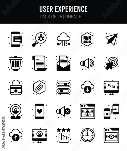 25 User Experience Lineal Fill icons Pack vector illustration.
