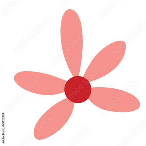 2d Flat red six-petal flower with dark red center, minimal vector style, perfect for spring designs, greeting cards, and floral decorative illustrations.