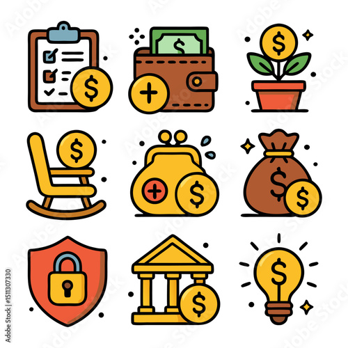 2d icon pack with financial saving theme. Perfect for your projects, digital marketing, website design and more