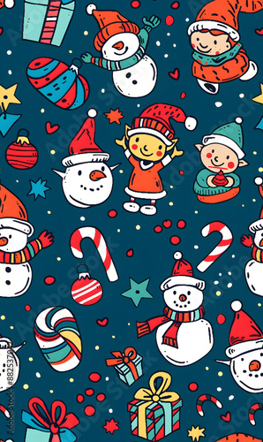 2D illustrated New Year card in a cute graphic style seamless pattern.
