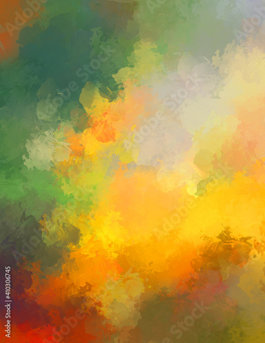 2D illustration of colorful brush strokes. Decorative texture painting. Vibrant paint pattern backdrop.