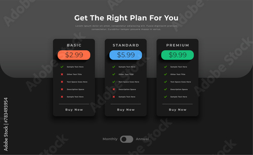 3 options pricing chart table dark template for business presentation