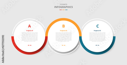 3 points template comparison concept for infographic with big circle and outline wobble line up and down with drop shadow style with two point list information