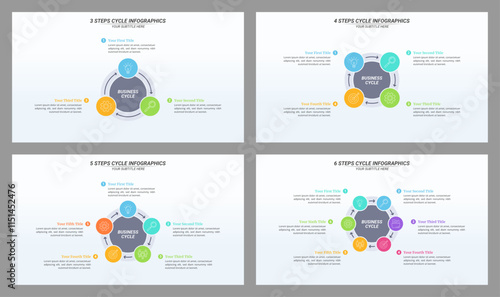 3 up to 6 Steps Cycle Infographic with Editable Text on a 16:9 Layout for Business Presentation, Poster, Banner and Booklet.