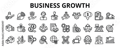 30 Business Growth Line Icons Vector - revenue, profit, workspace, strategy, expansion, success, business analytics, relationship, implementation, market share