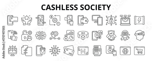 30 Cashless Society Line Icons Vector - Efficiency, Technology, Contactless, Automation, Financial, Digitalization, Transfer