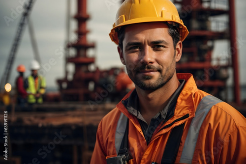 30 years old man working on a construction site. Image created using artificial intelligence.