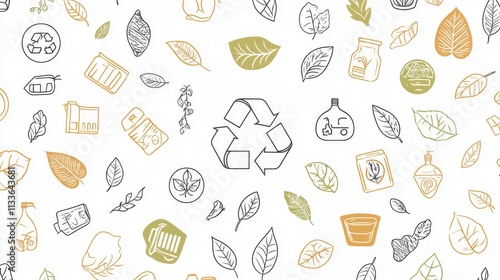 30.Collection of simple vector icons in line art style, depicting ecological symbols like leaves, recycling signs, and organic labels, representing eco-friendly and sustainable packaging on a white