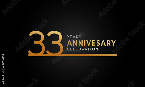 33 Year Anniversary Celebration Logotype with Single Line Golden and Silver Color for Celebration Event, Wedding, Greeting card, and Invitation Isolated on Black Background