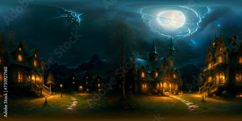 360 panoramic Gothic and fantasy land with rivers and mountains - generative ai, üretken yapay zeka