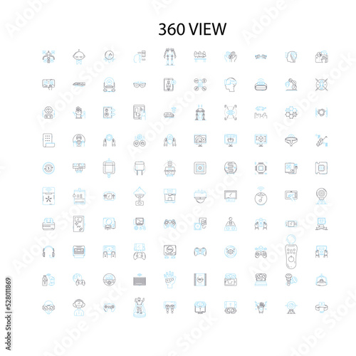 360 view icons, signs, outline symbols, concept linear illustration line collection