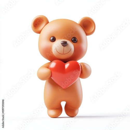 3D A cuddly teddy bear holding a red heart, Isolated on White Background