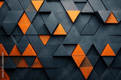 3D abstract background with dark grey and orange triangular patterns in a geometric design