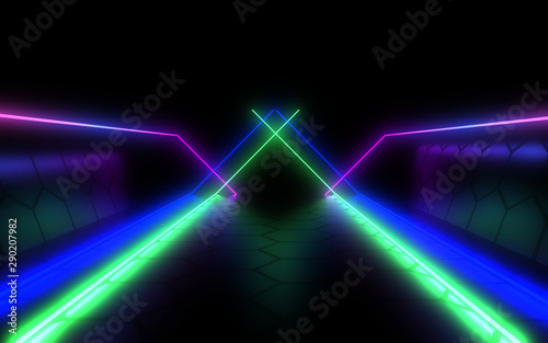 3D abstract background with neon light. 3d illustration