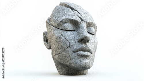 3d abstract head of sculpture against white background
