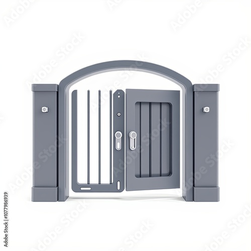 3D Anti-Gravity Security Gate Illustration with Magical Access Control Theme on White Background