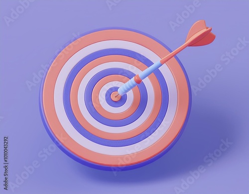 3D arrow hits the bullseye on a colorful target, 3D isometric