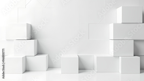 3D background minimalism A wall with 3D blocks 3D wallpaper with white cubes Futuristic concrete background with copy spase