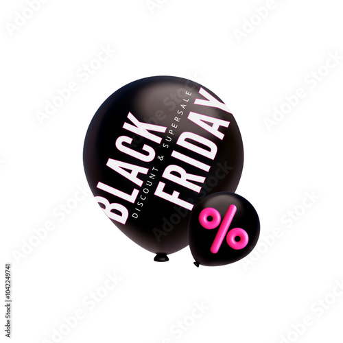 3D black inflated balloon with text Black Friday and percentage sign vector design, Discount and Supersale special offer