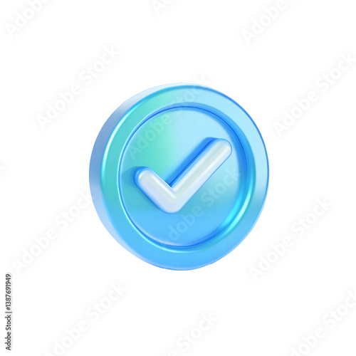 3D Blue Check Mark Badge Icon Isolated on White Background