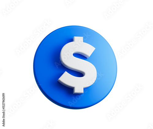 3d Blue circular button with a white dollar symbol in the center. 3D Illustration.