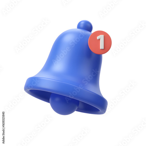 3D Blue Notification Bell with Red Alert Badge Signifying Important Updates and Messages on Social Media Platforms