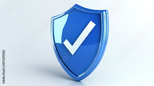 3D blue shield with checkmark icon in the center, isolated on white, symbolizing verified protection