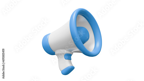 3d business illustration of white and blue megaphone on white color background. 3d render design of megaphone for social media banner