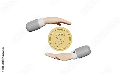 3d businessman hands protecting coins isolated. saving money wealth business concept, 3d render illustration
