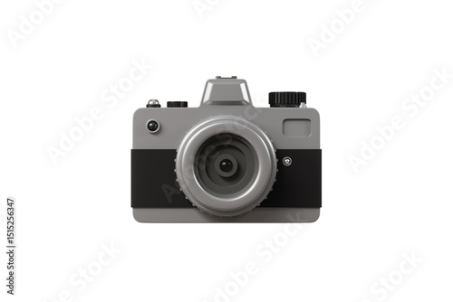 3D Camera photo with lens and flash icon isolated on transparent white background. Minimal cartoon modern digital camera icon. Compact digital photo camera. Picture concept. 3d render illustration.