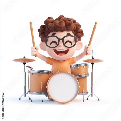 3D Cartoon Boy Drummer Playing Drums With Enthusiasm