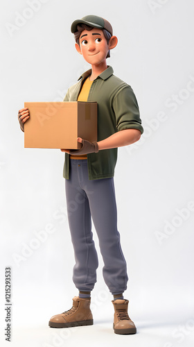 3D cartoon courier deliveryman