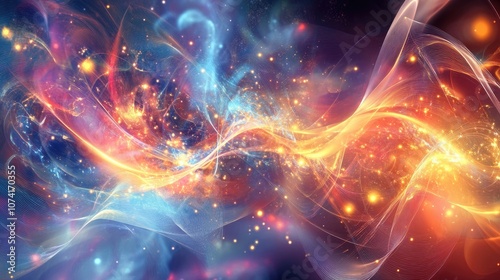 3D cartoon rendering of cosmic energy strings featuring flowing energy represented as thin bright elements that create structural fibers