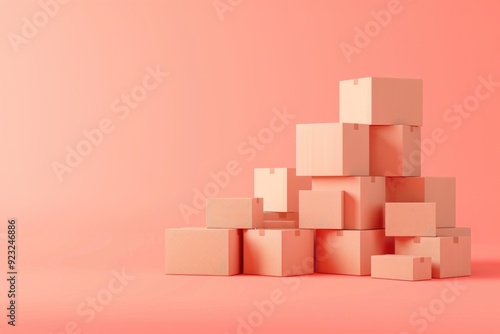 3D Cartoon Stack of Empty Boxes in Peachy Pink Background - Design for Print, Card, Poster