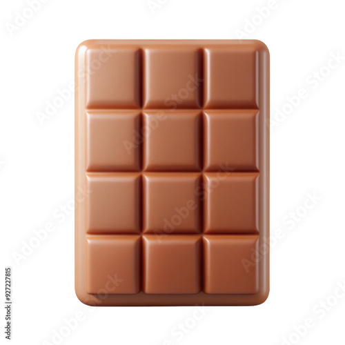 3D chocolate bar icon featuring a smooth, square design with individual segments. Perfect for food-related digital content, apps, or playful visual projects. Isolated on transparent background, png.