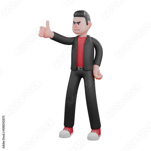 3D Choreographer in Cartoon Style. A male choreographer stands giving a thumbs up with his left hand and his right hand on his waist with a smiling expression. Dance Performer