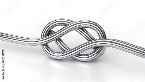 3D Chrome squiggle line isolated. Metallic tangled line 3D element, abstract metal curve or knot.