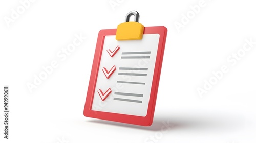 3d Clipboard, checklist symbol. Assignment target icon. Project task management and effective time planning tools. 3d rendering. Vector illustration, white background