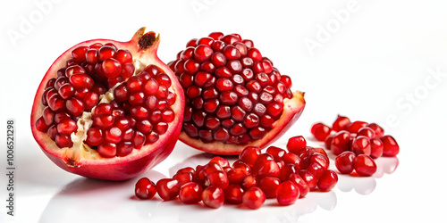 3D Close-Up of Glistening Pomegranate Seeds: Macro Shot Highlighting Vibrant Red Color, Juiciness, and Texture with Slow Zoom - Isolated Icon on White Background