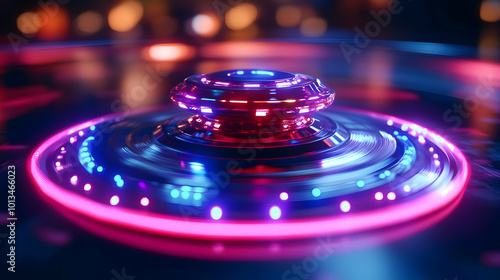 3D Close-Up of Spinning Dreidel with Embedded LED Lights - Macro Shot of Glowing Dreidel on White Background for Modern Hanukkah Concept