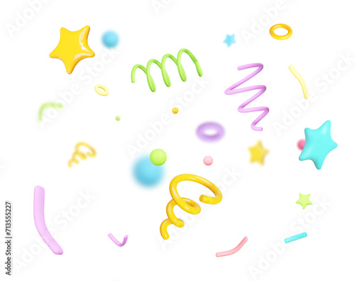 3d colorful party confetti on isolated background. Holiday Festival Design for Greeting Card, Invitation or Poster. Celebration & Party.Surprise Banner. Stock vector illustration.