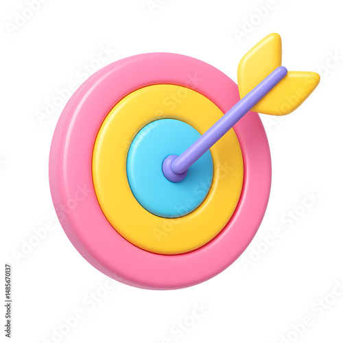 3D colorful target icon with arrow hitting bullseye, perfect for business goals, accuracy, performance, or success concept