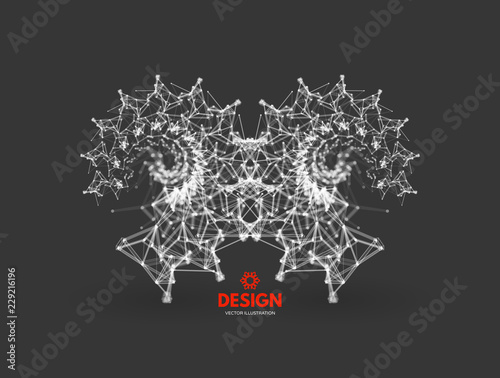 3d connection structure. Futuristic technology style. Low-poly element for design. Vector illustration for science, chemistry or education.