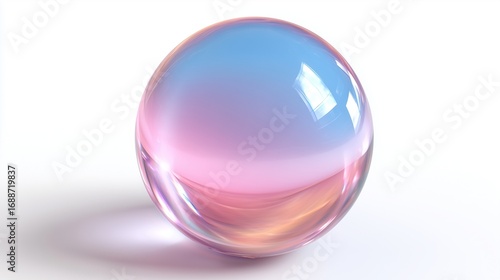 3D crystal ball with pearl color glowing with light, simple circle design, clip art on white background.