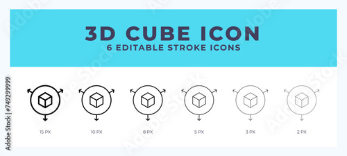 3d cube vector icon for web and app. Editable stroke vector illustration