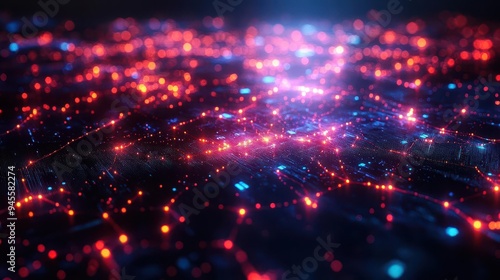 3d data visualization of complex financial analytics glowing neon lines and nodes forming intricate patterns dark background with vibrant color accents