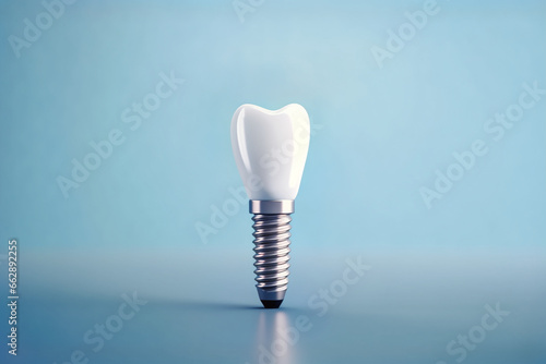3d dental implant on a blue background. Dentist. Teeth. Human health.