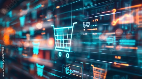 3D digital shopping icons displaying various retail elements like barcode scanners, shopping carts, and customer service agents, symbolizing seamless customer experience across platforms.