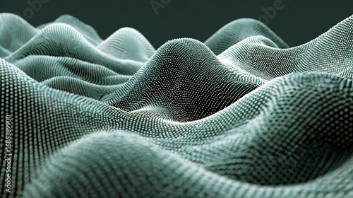 3D digital waves made of binary code flowing in abstract motion. Futuristic concept of data, AI, machine learning, and virtual technology in a minimal cyber landscape.