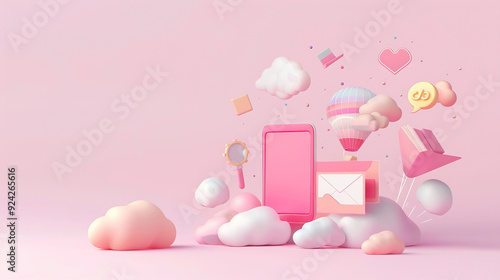 3D element pink business with pink background
